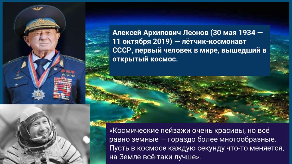 Алексей Архипович Леонов (30 мая 1934 —11 октября 2019) — лётчик-космонавт