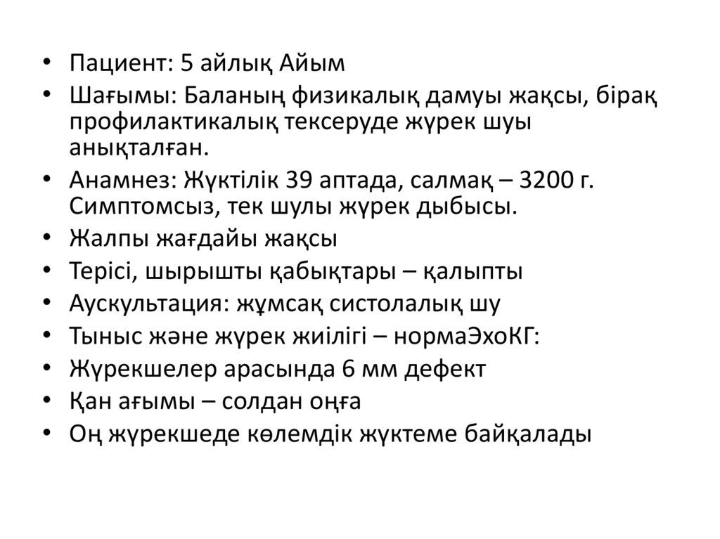 • Пациент: 5 айлық Айым• Шағымы: Баланың физикалық дамуы жақсы, бірақ