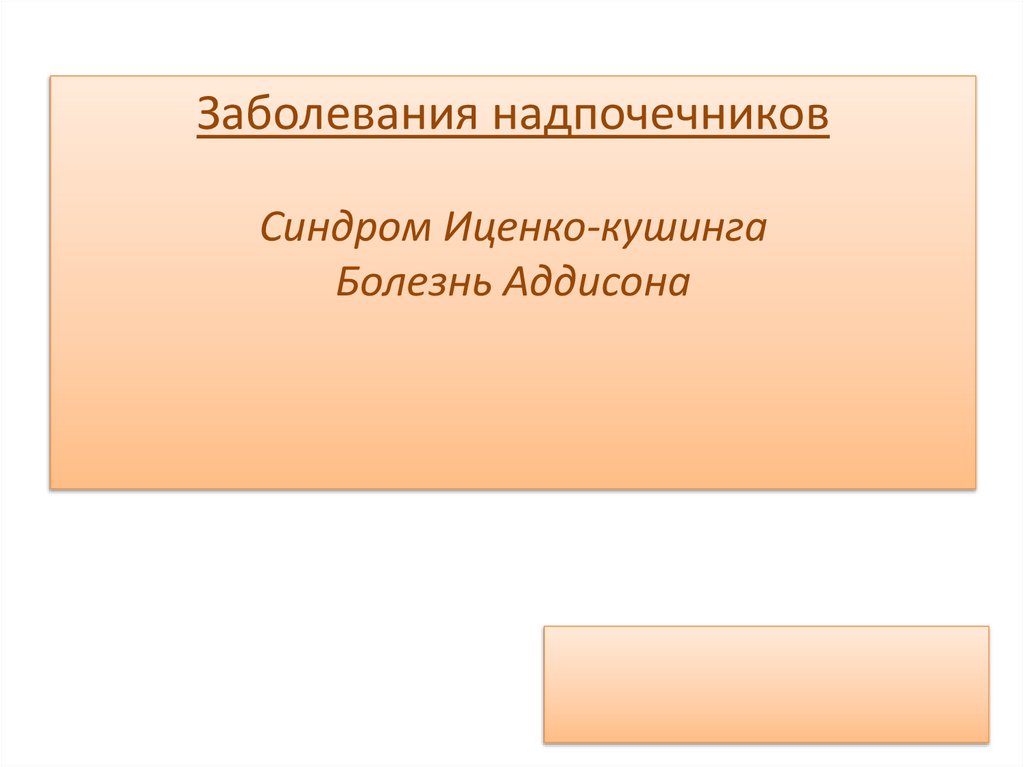 1. Заболевания надпочечников Синдром Иценко-кушинга Болезнь Аддисона