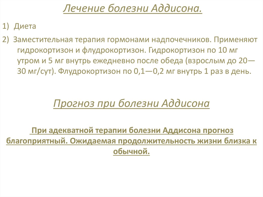 2) Заместительная терапия гормонами надпочечников. Применяют