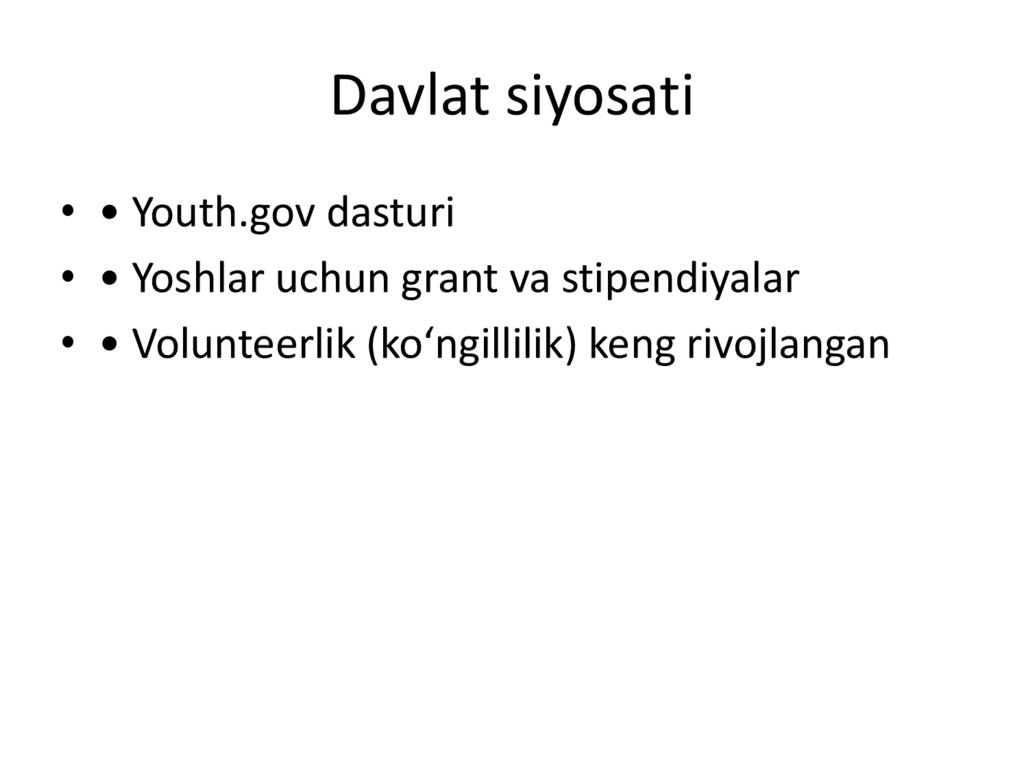 Davlat siyosati• • Youth.gov dasturi