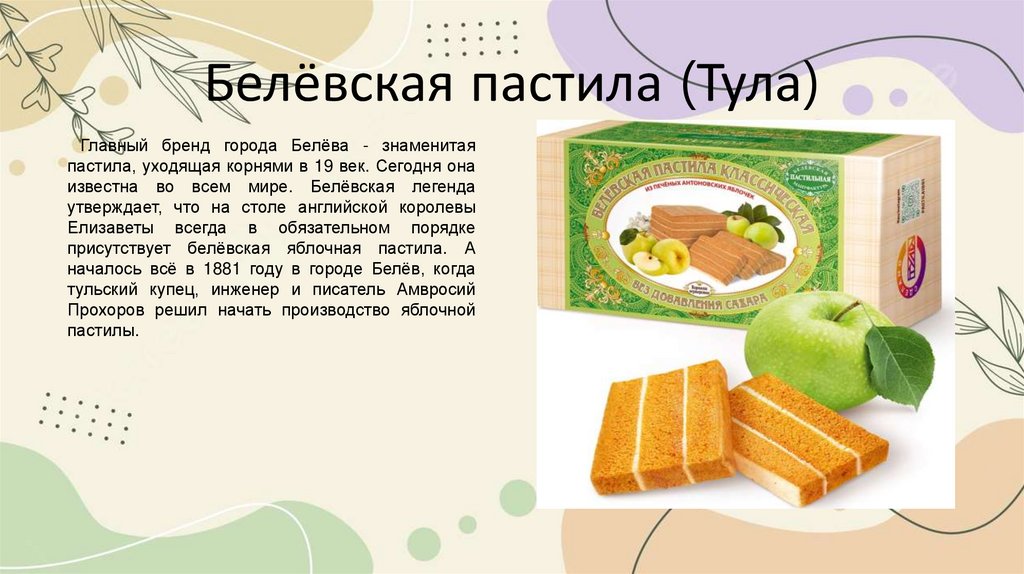 Белёвская пастила (Тула)Главный бренд города Белёва - знаменитая