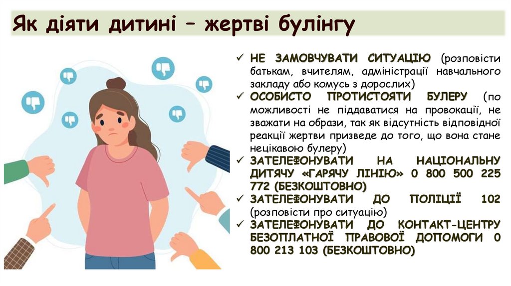 Як діяти дитині – жертві булінгуНЕ ЗАМОВЧУВАТИ СИТУАЦІЮ (розповісти