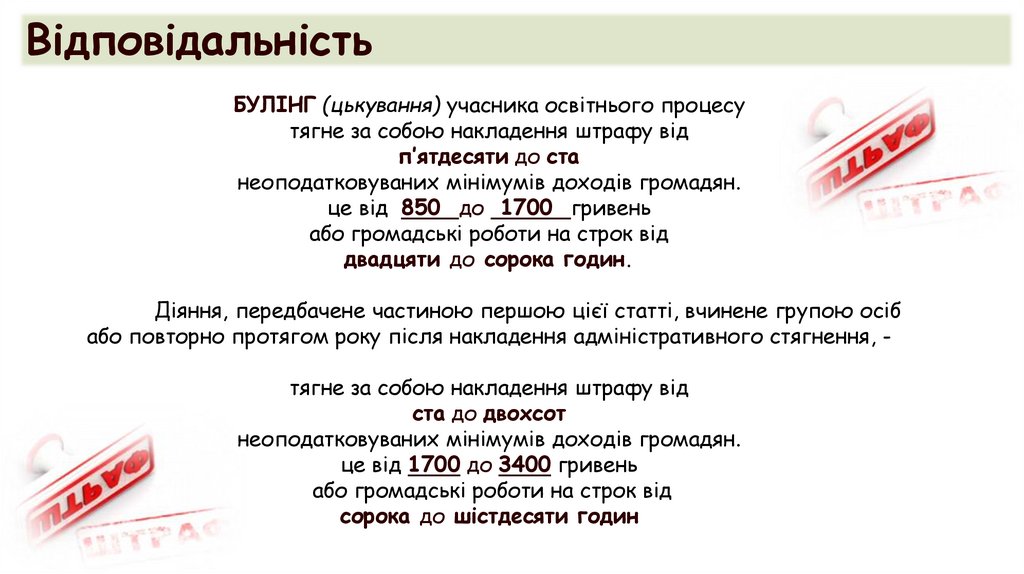 ВідповідальністьБУЛІНГ (цькування) учасника освітнього процесу