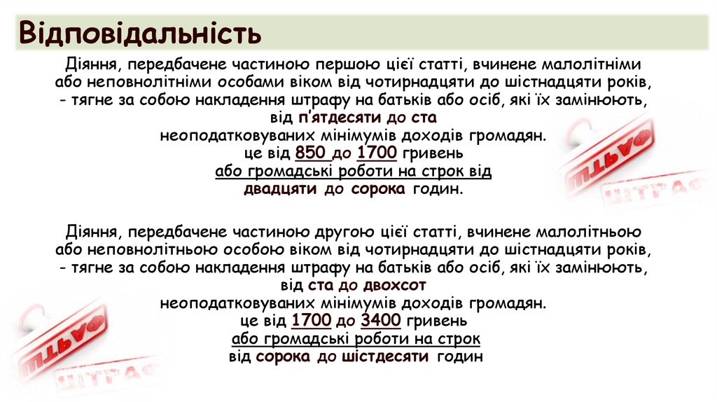 - тягне за собою накладення штрафу на батьків або осіб, які їх замінюють,