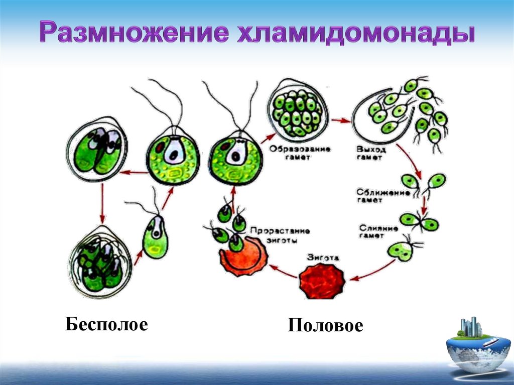 Хламидомонада - одноклеточная водоросль размером≈10 мкм.