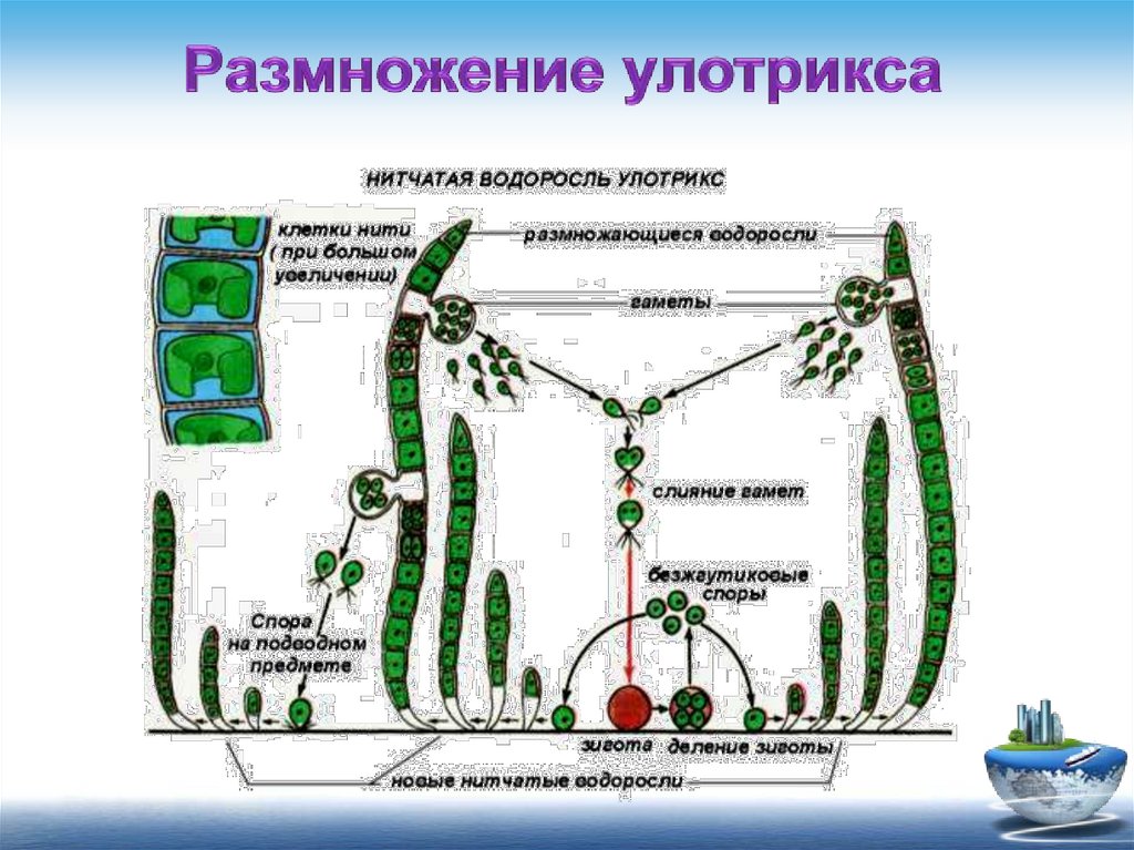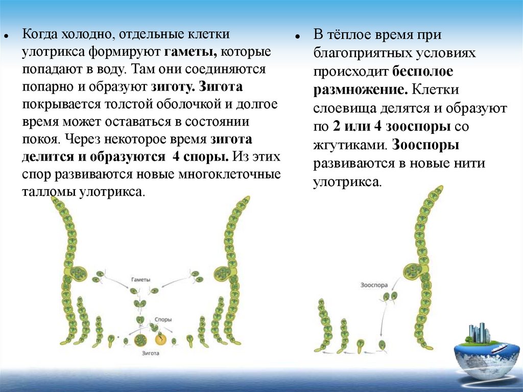 Когда холодно, отдельные клеткиулотрикса формируют гаметы, которые