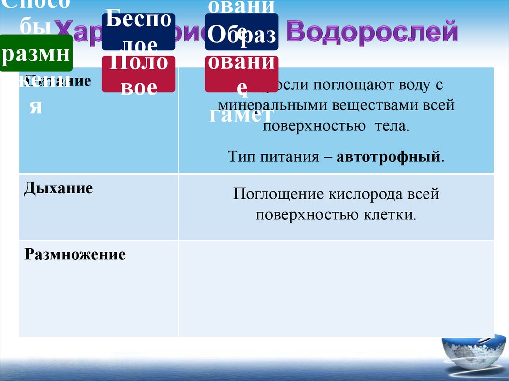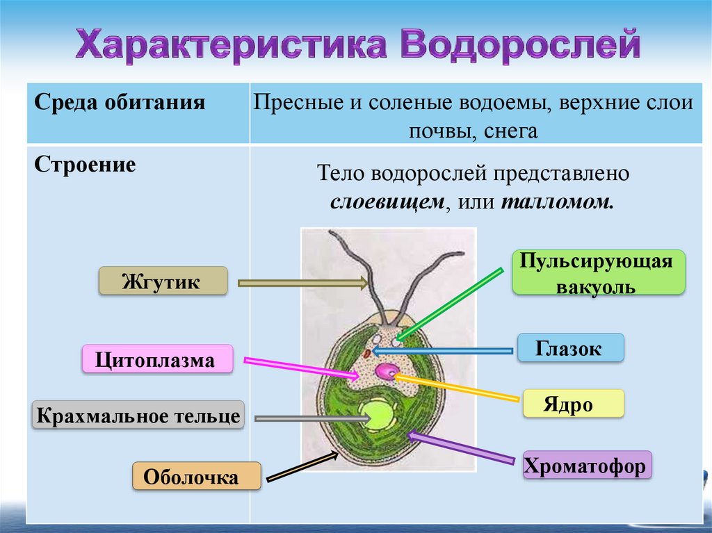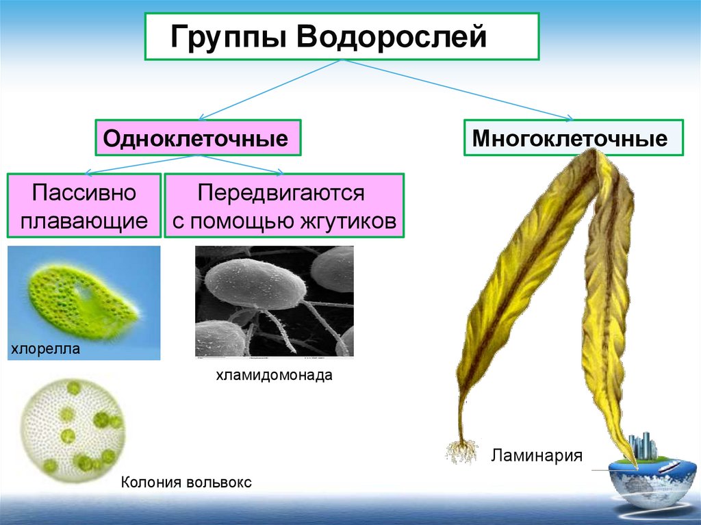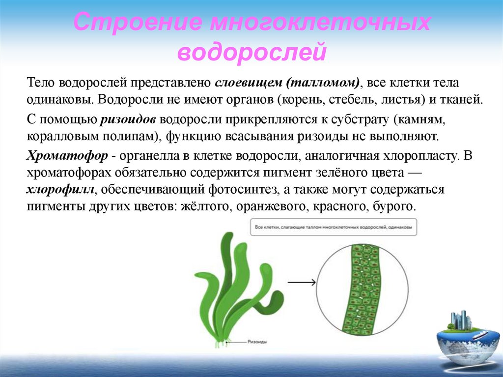 одинаковы. Водоросли не имеют органов (корень, стебель, листья) и тканей.