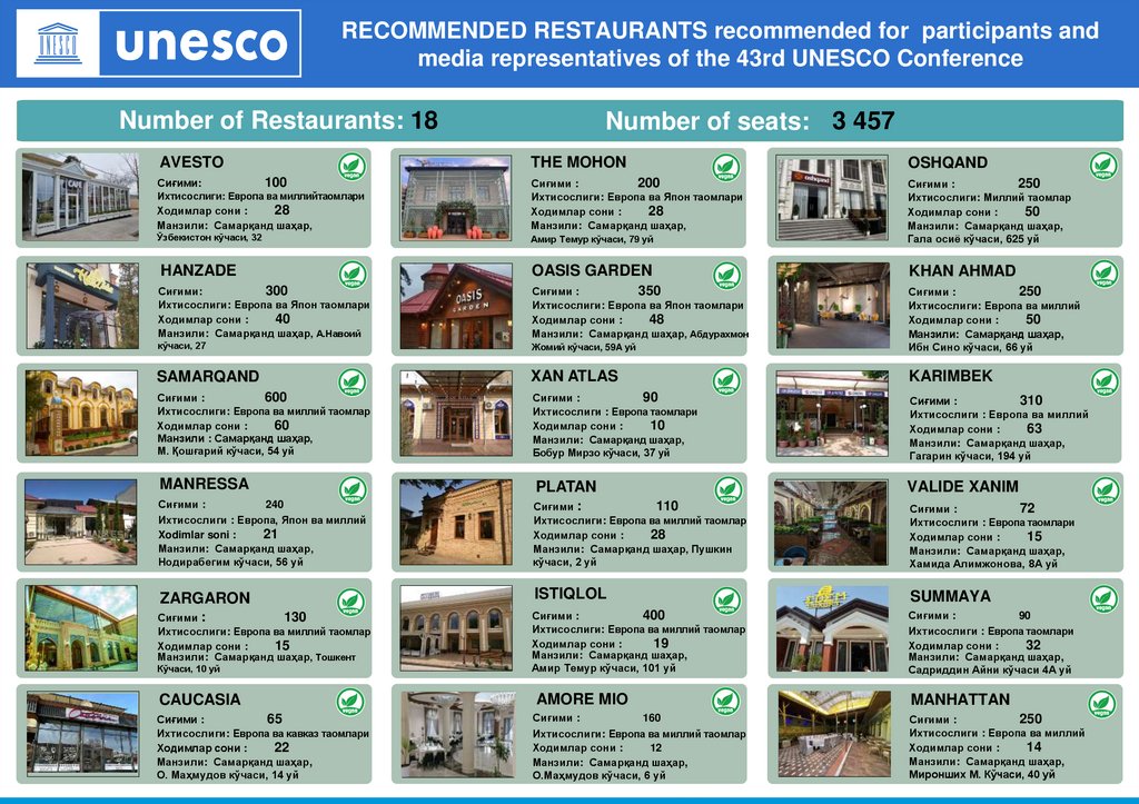 RECOMMENDED RESTAURANTS recommended for participants andmedia representatives of the 43rd UNESCO Conference