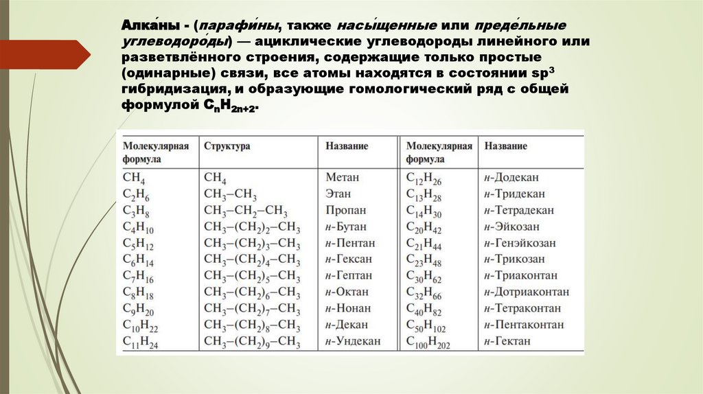 Алка́ны - (парафи́ны, также насы́щенные или преде́льныеуглеводород