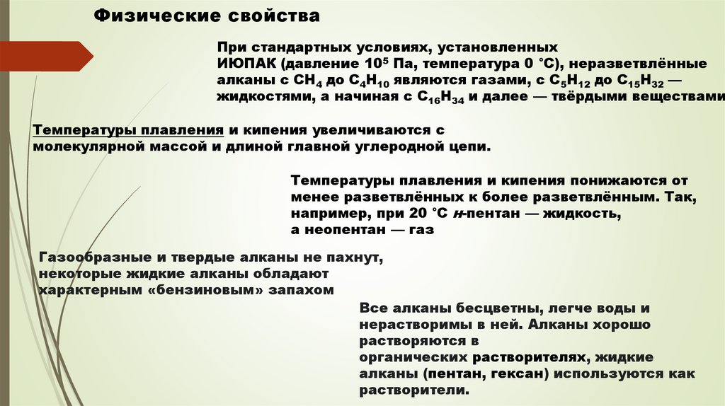алканы с CH4 до C4H10 являются газами, с C5H12 до C15H32 —