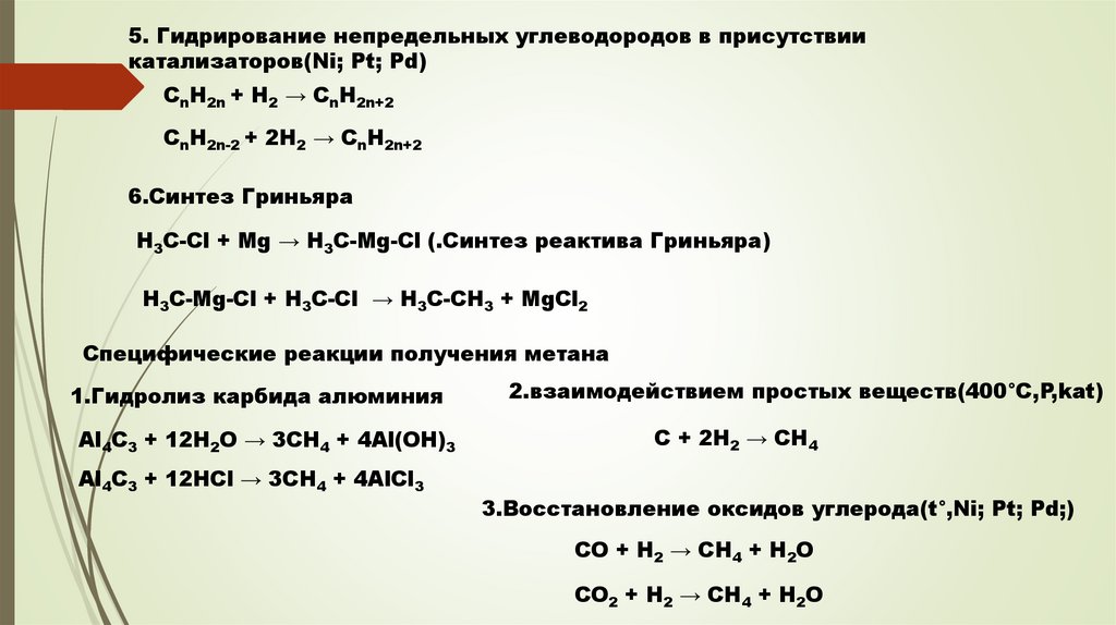 5. Гидрирование непредельных углеводородов в присутствиикатализаторов(Ni; Pt; Pd)