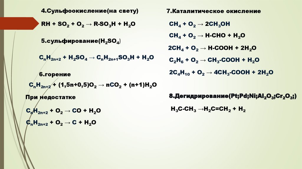 4.Сульфоокисление(на свету)7.Каталитическое окисление