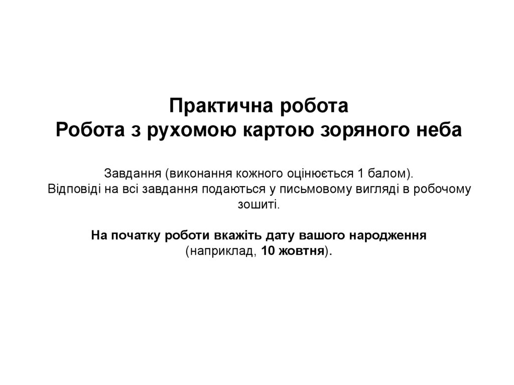 Практична роботаРобота з рухомою картою зоряного неба