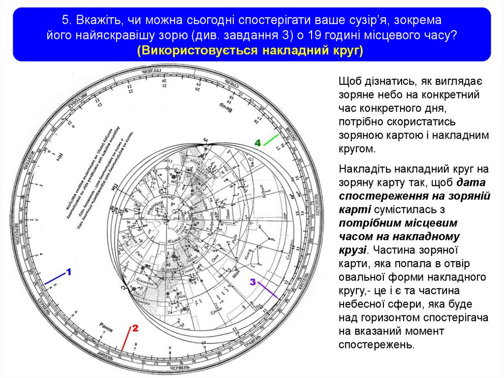 небесних тіл), потрібно повертати накладний круг до тих пір, поки світило не