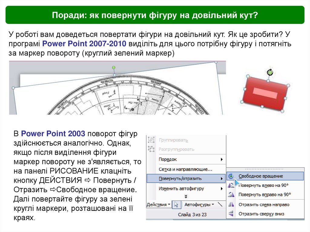 В Power Point 2003 поворот фігур