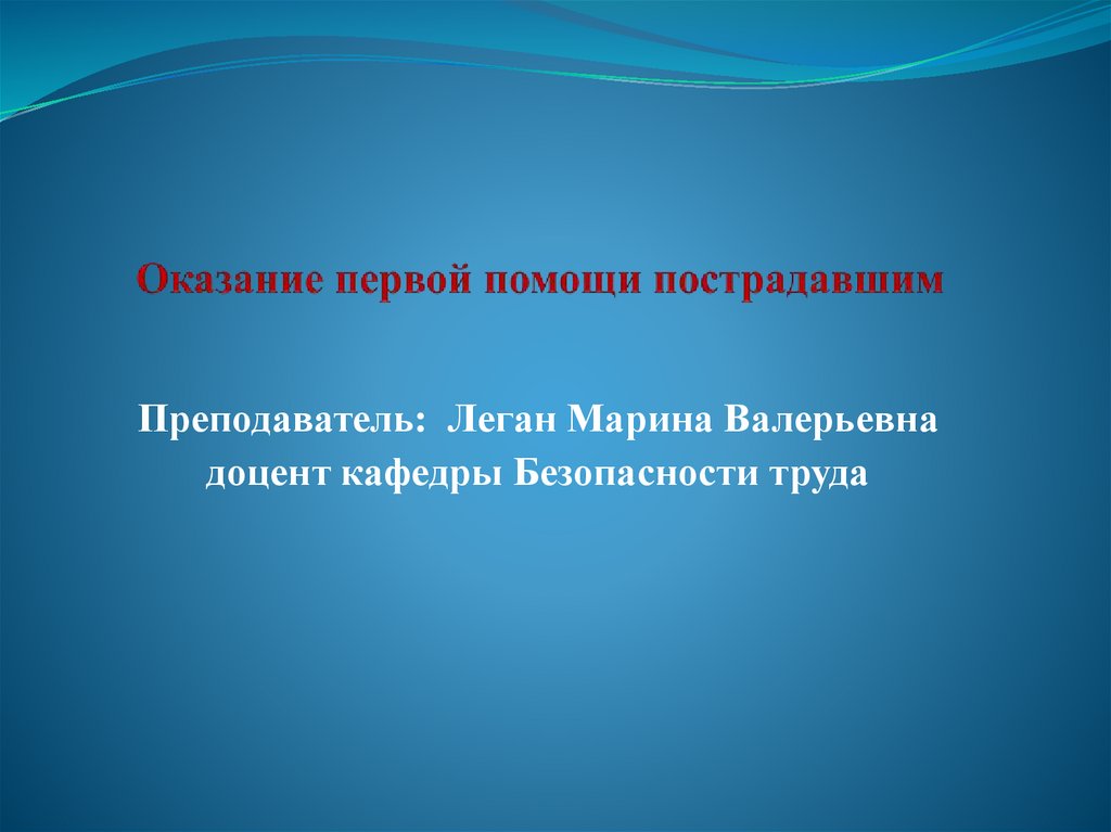 Преподаватель: Леган Марина Валерьевнадоцент кафедры Безопасности труда