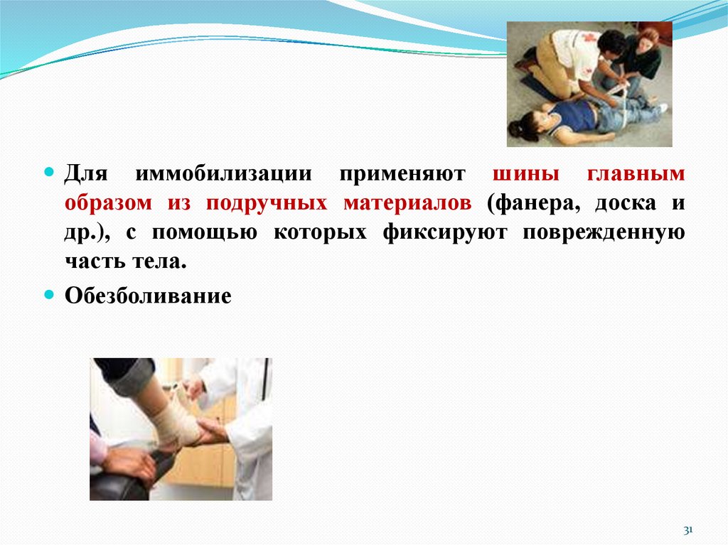 иммобилизацию и доставляют пострадавшего в