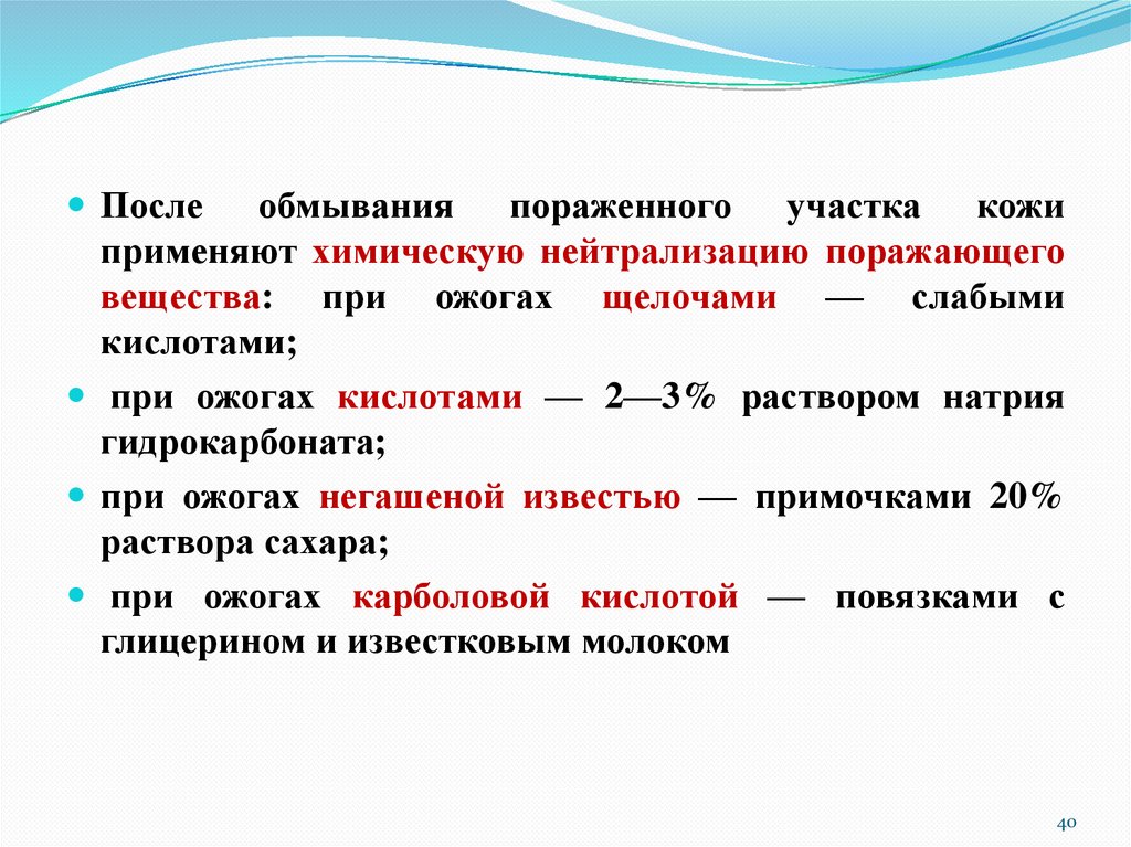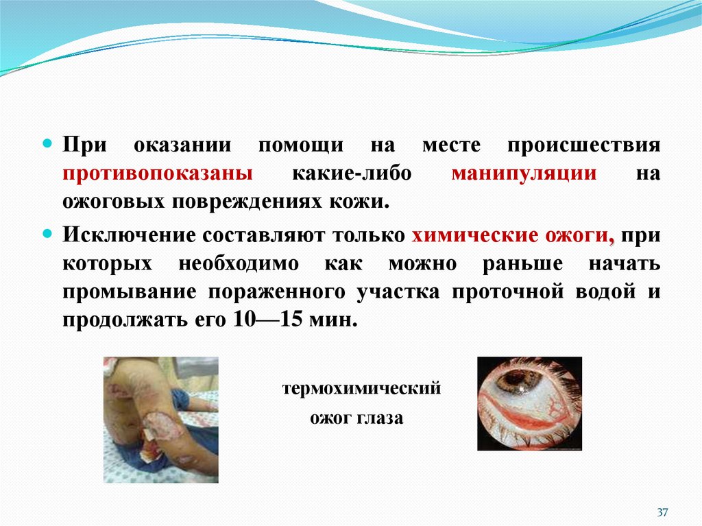 химических ожогах, поражениях электрическим током.