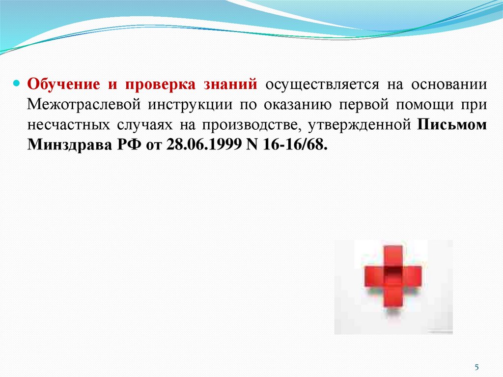 Обучение и проверка знаний осуществляется на основанииМежотраслевой инструкции по оказанию первой помощи при