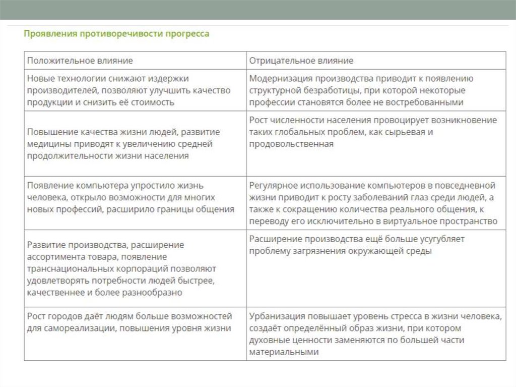 3.Противоречивость прогресса: