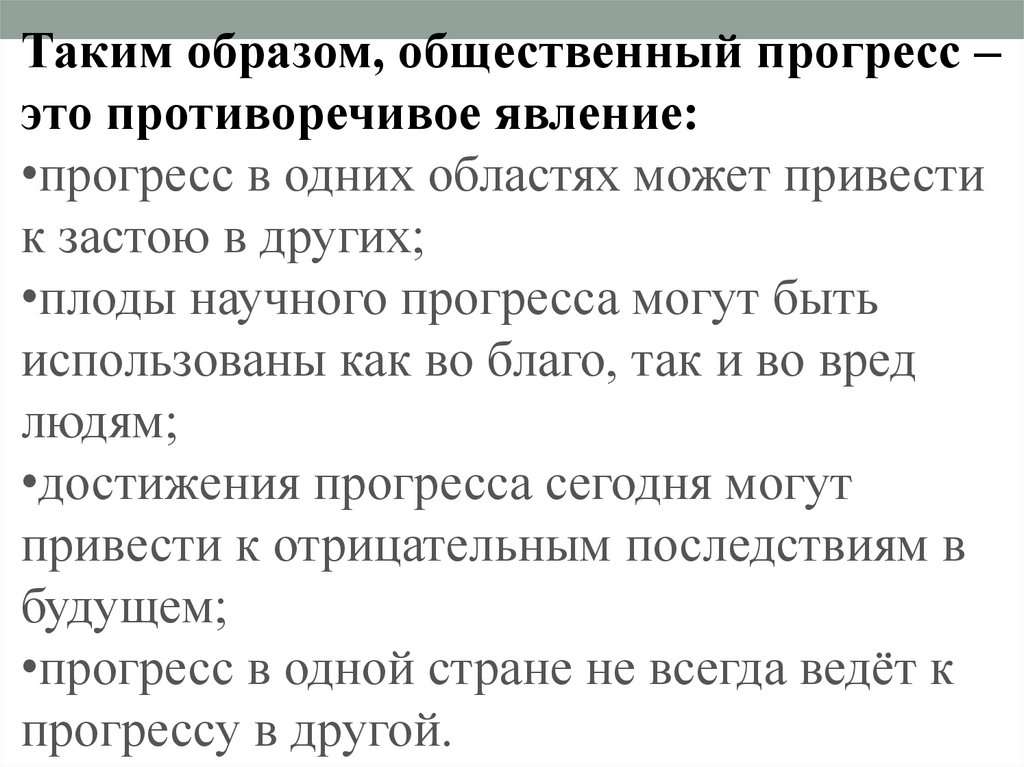 Таким образом, общественный прогресс –это противоречивое явление:
