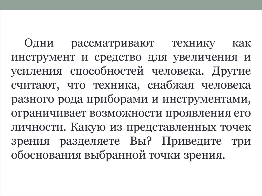 Одни рассматривают технику какинструмент и средство для увеличения и