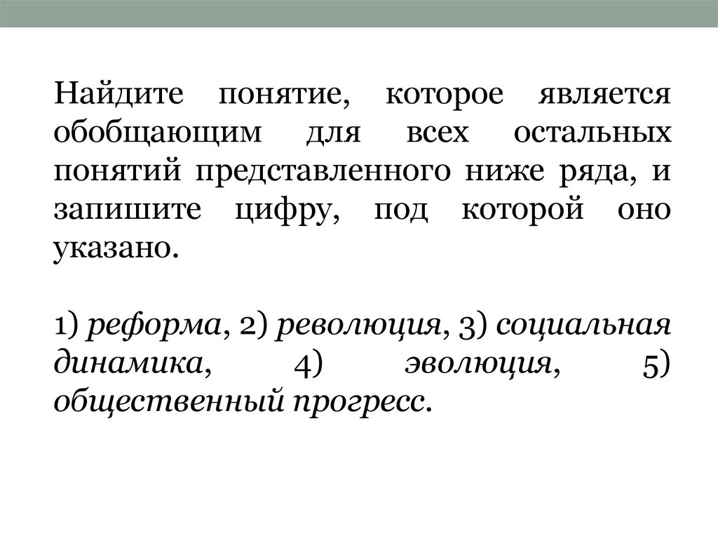 понятий представленного ниже ряда, и