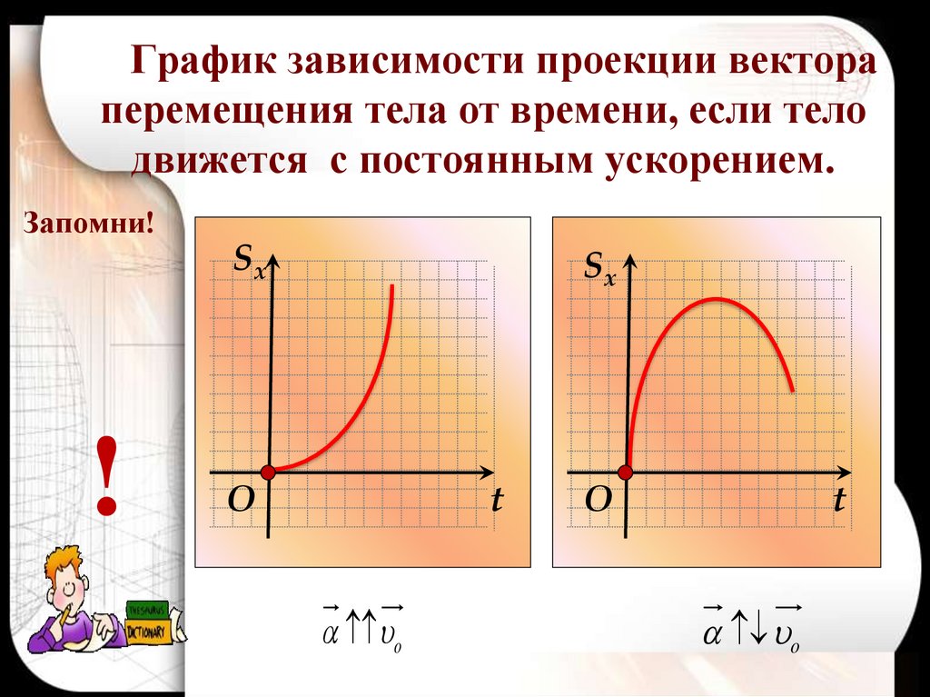 График зависимости проекции вектораперемещения тела от времени, если тело