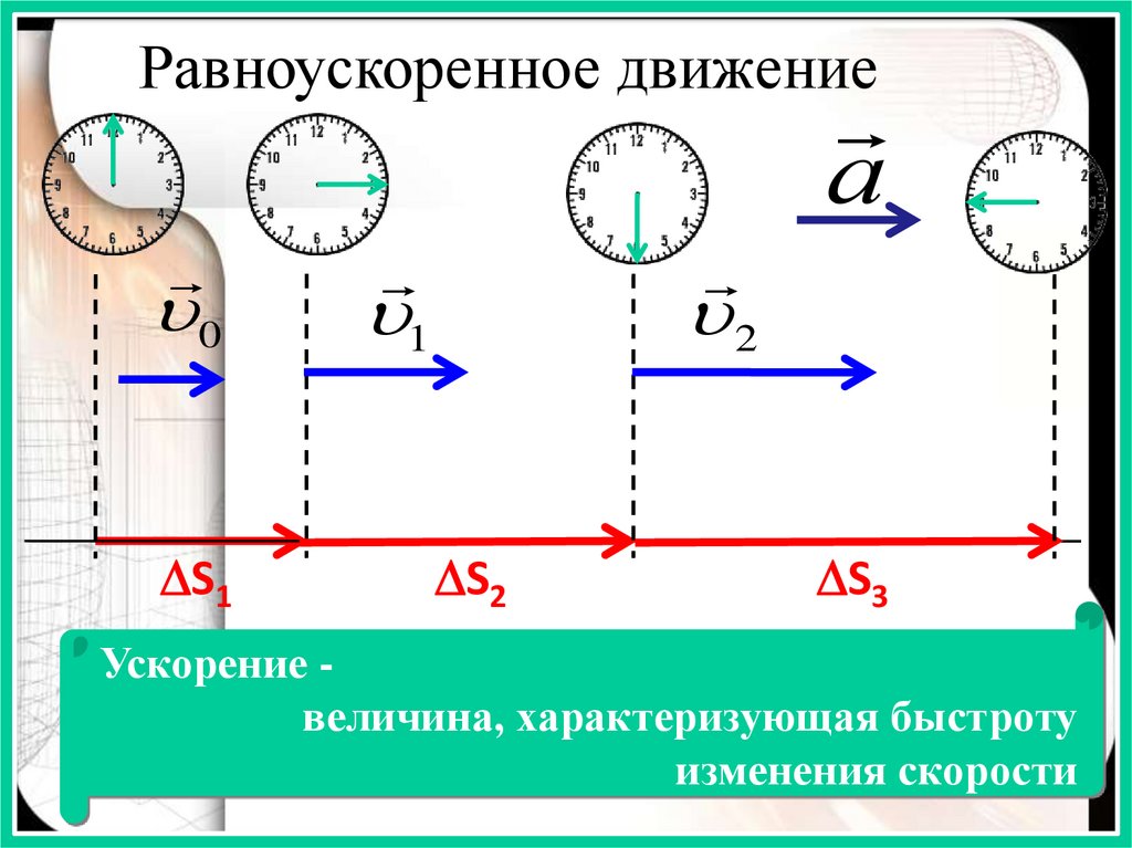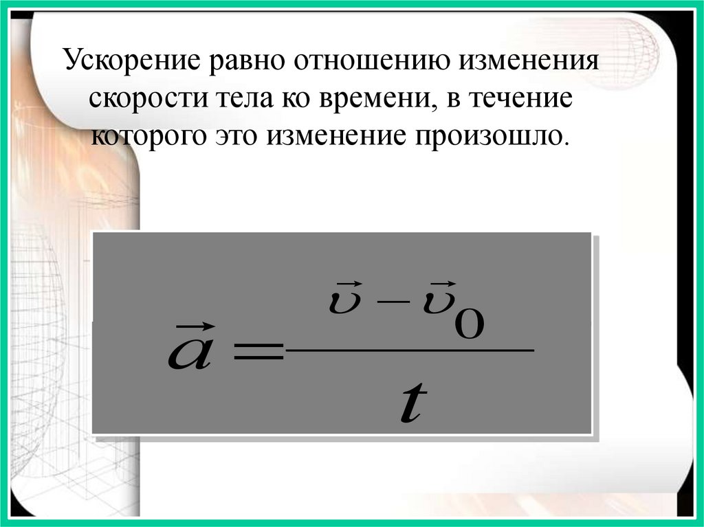 Ускорение равно отношению измененияскорости тела ко времени, в течение