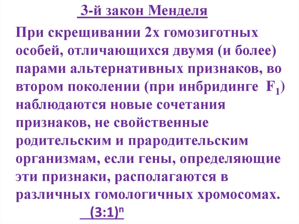 3-й закон МенделяПри скрещивании 2х гомозиготных