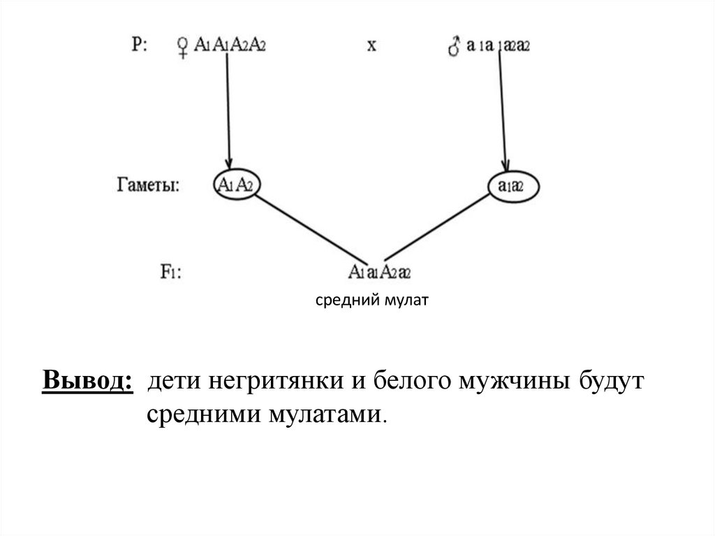средний мулатВывод: дети негритянки и белого мужчины будут