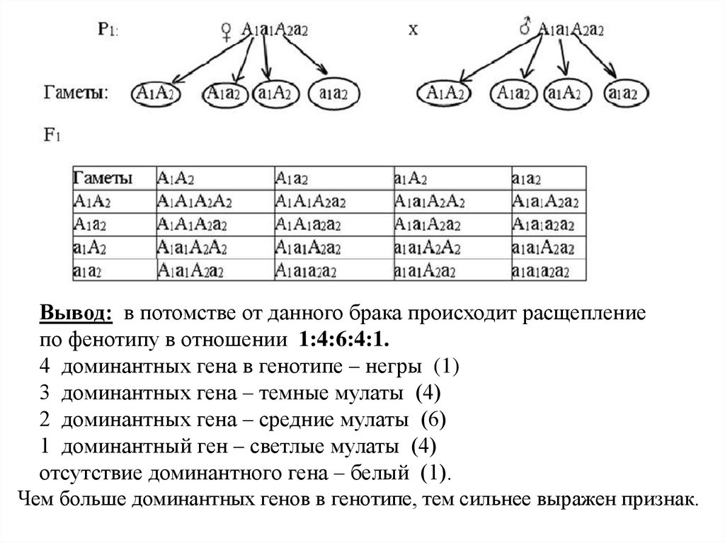 А1а1а2а2 и др.) обеспечивает разную интенсивность окраски кожи у мулатов. Полное