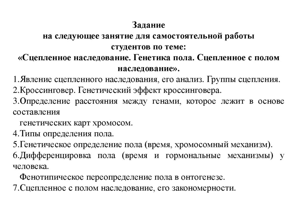 «Сцепленное наследование. Генетика пола. Сцепленное с полом