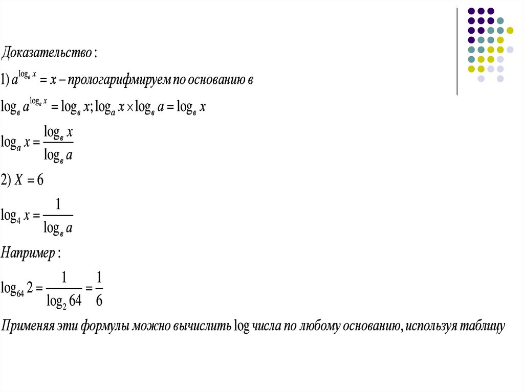 Доказательство :1) а logв x x прологарифмируем по основанию в