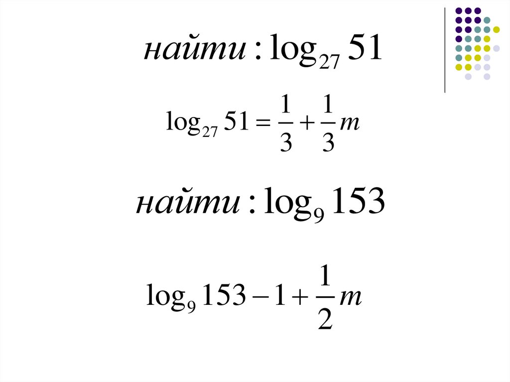Закрепление.1) Выразить данный логарифм через log с основанием log5 3; log2 7