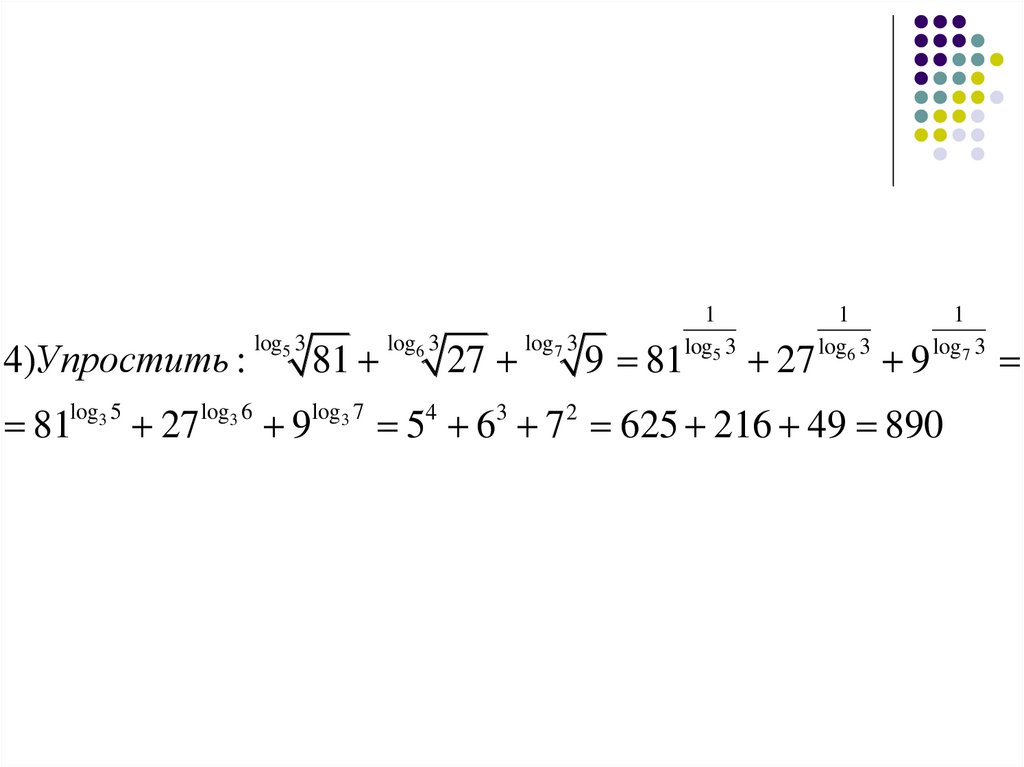 81log3 5 27log3 6 9log3 7 54 63 7 2 625 216 49 890