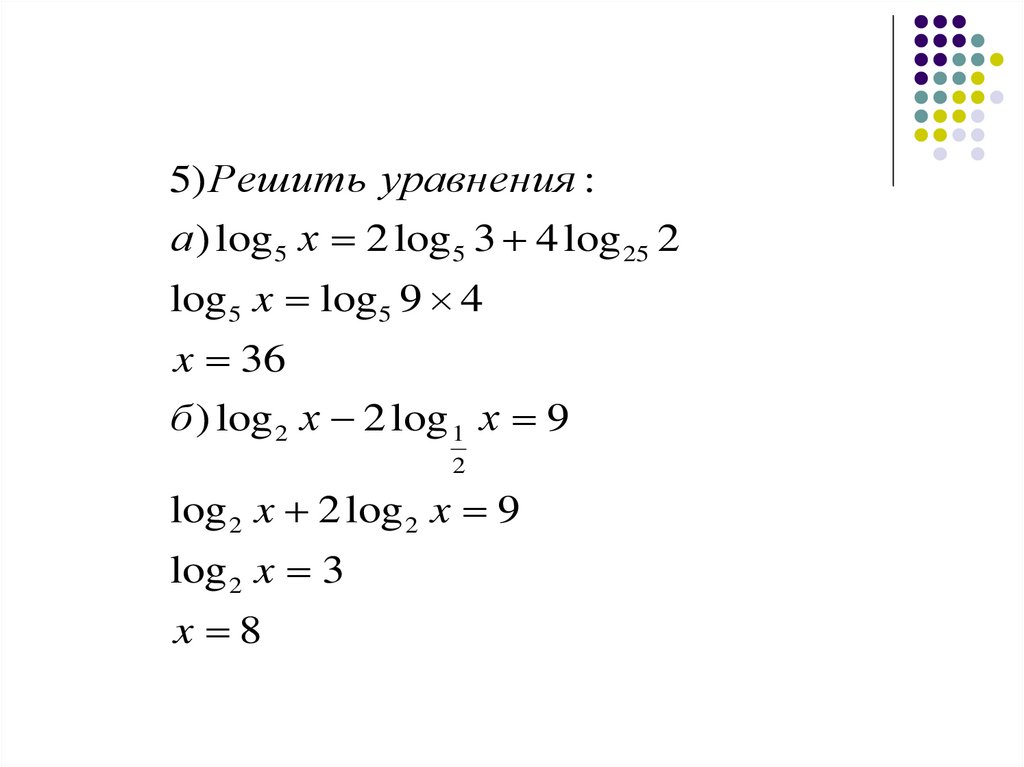 5) Решить уравнения :а ) log5 x 2 log 5 3 4 log 25 2