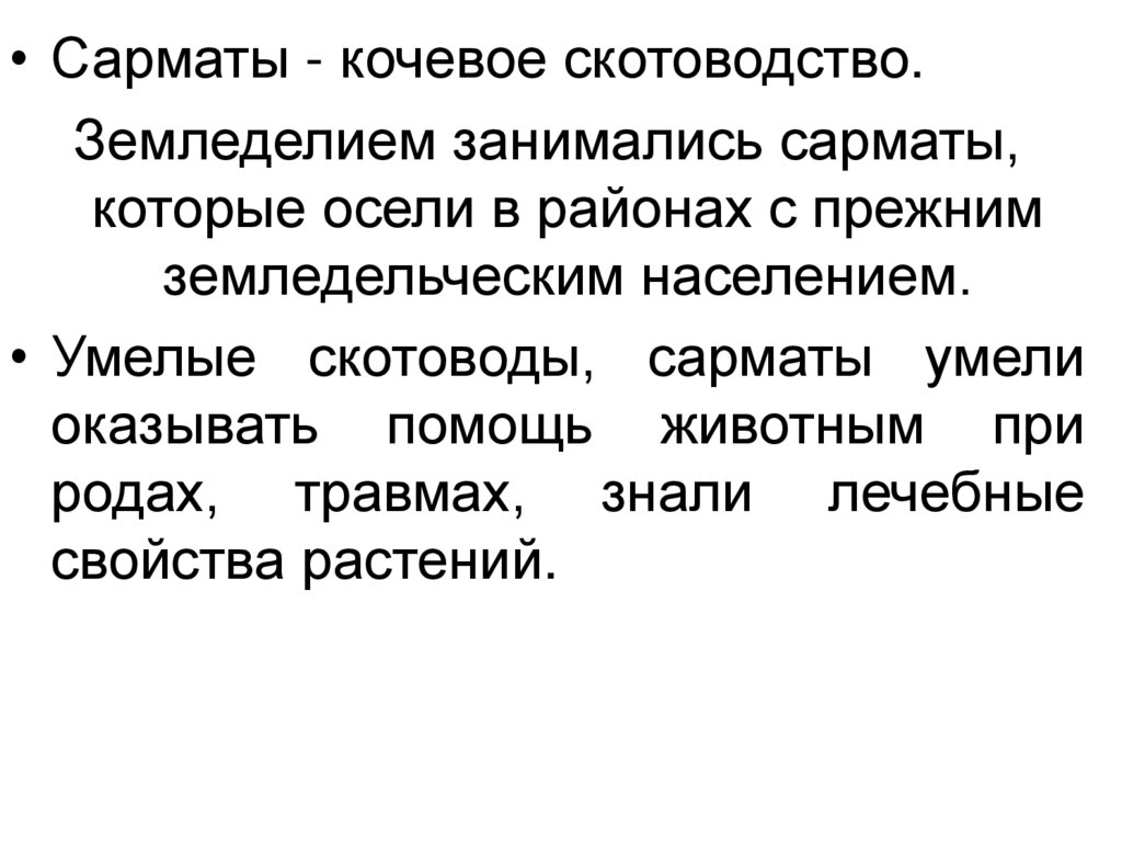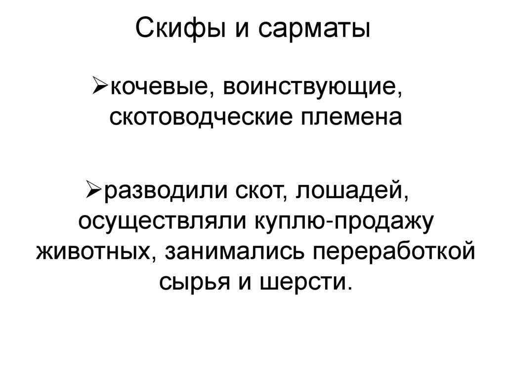 • Сарматы - кочевое скотоводство.Земледелием занимались сарматы,