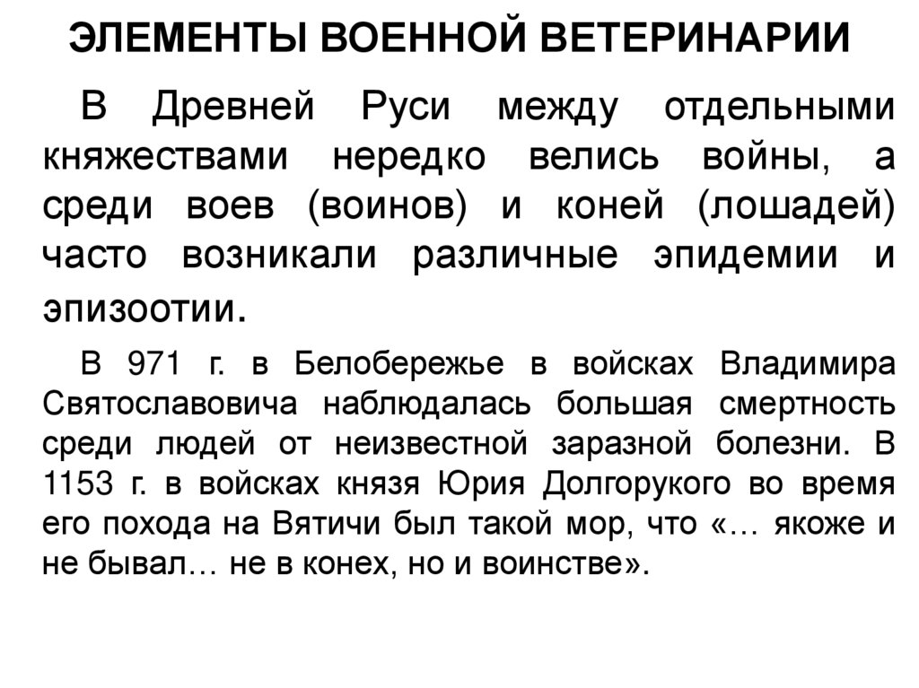 ЭЛЕМЕНТЫ ВОЕННОЙ ВЕТЕРИНАРИИВ Древней Руси между отдельными