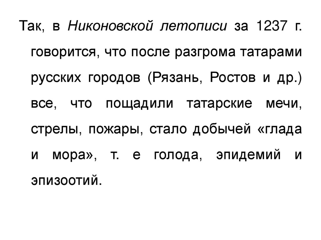 Так, в Никоновской летописи за 1237 г.говорится, что после разгрома татарами