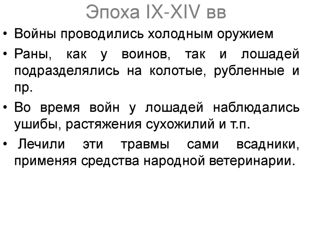 Эпоха IX-XIV вв• Войны проводились холодным оружием