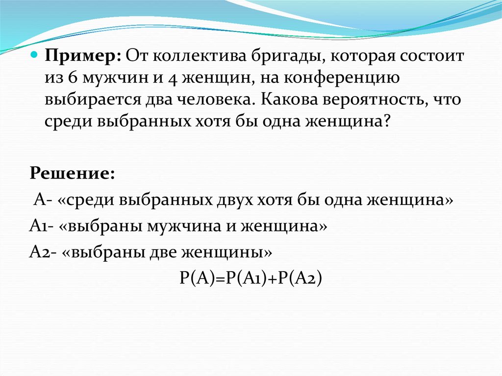 Пример: От коллектива бригады, которая состоитиз 6 мужчин и 4 женщин, на конференцию