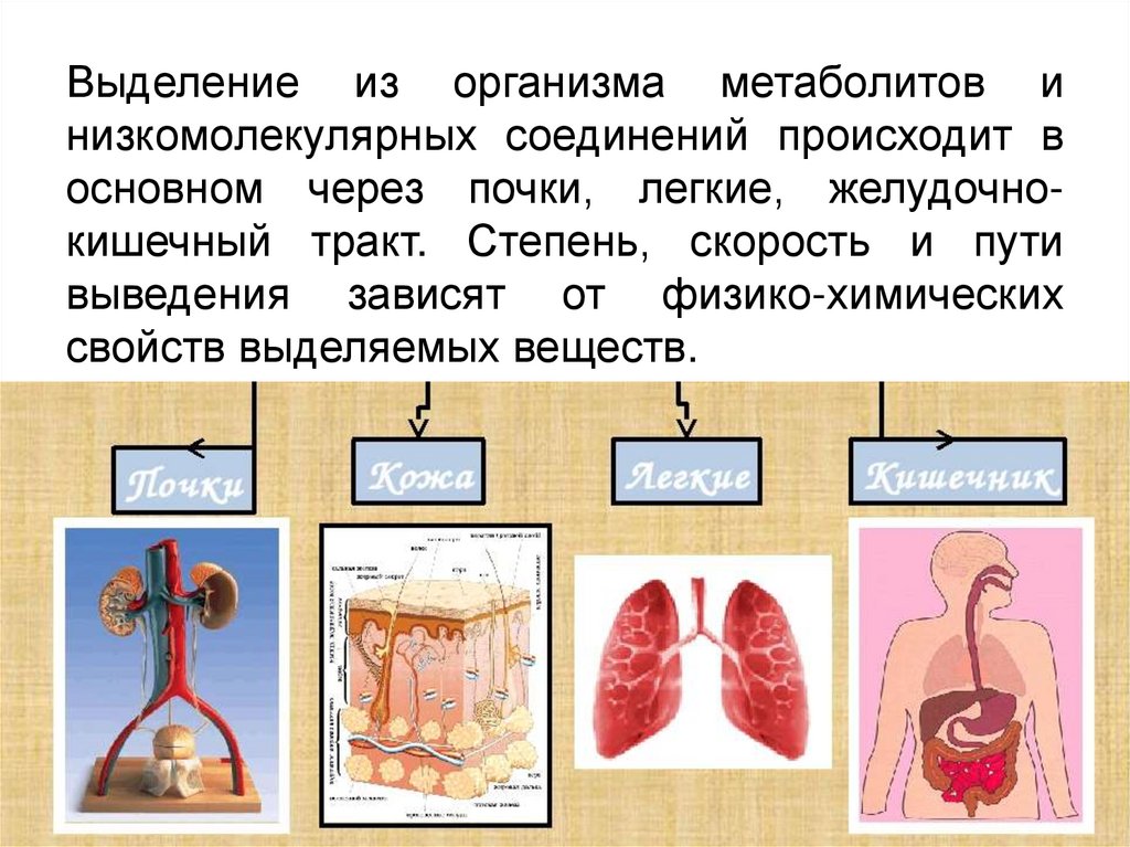 Выделение из организма метаболитов инизкомолекулярных соединений происходит в