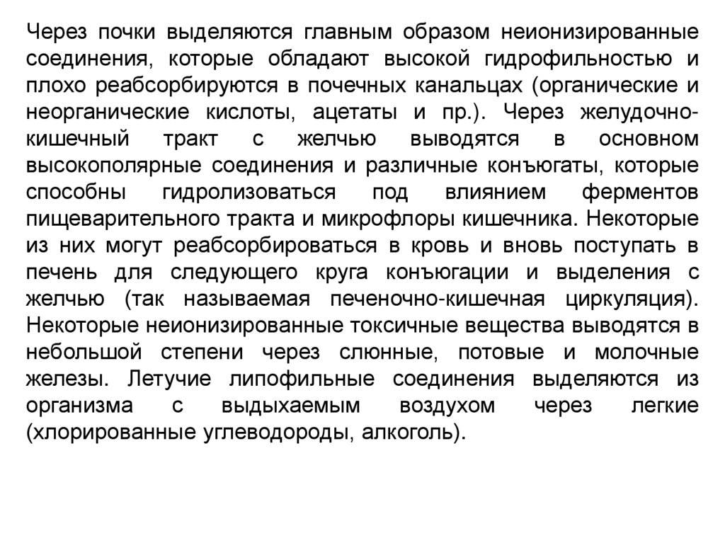 Через почки выделяются главным образом неионизированныесоединения, которые обладают высокой гидрофильностью и