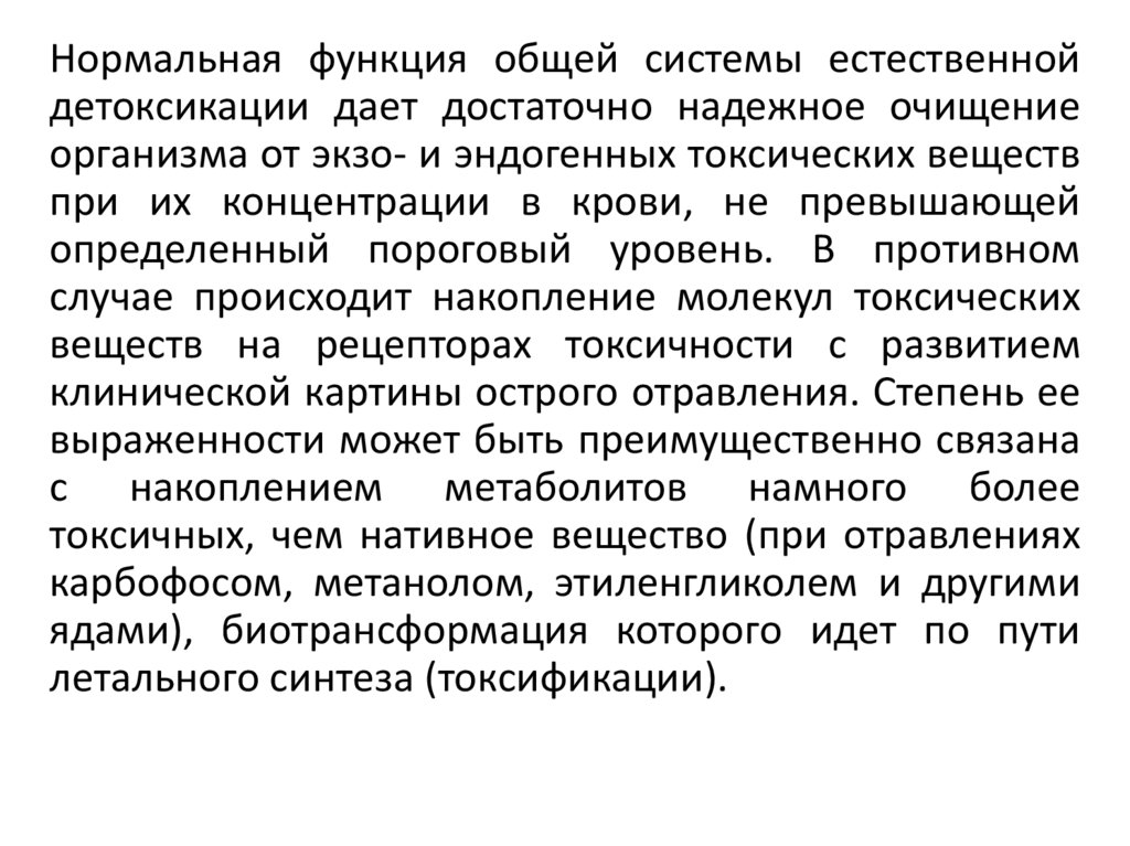 Нормальная функция общей системы естественнойдетоксикации дает достаточно надежное очищение