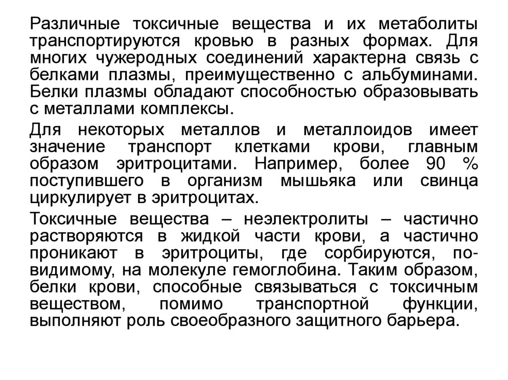 Различные токсичные вещества и их метаболитытранспортируются кровью в разных формах. Для