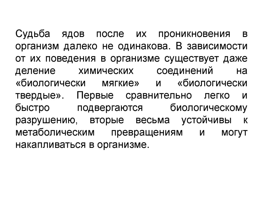 Судьба ядов после их проникновения ворганизм далеко не одинакова. В зависимости
