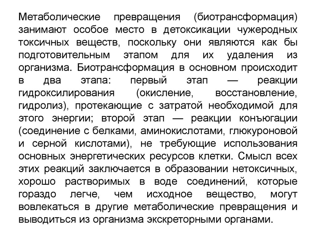 Метаболические превращения (биотрансформация)занимают особое место в детоксикации чужеродных
