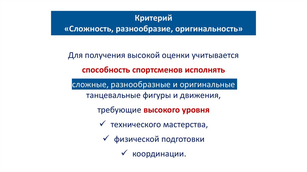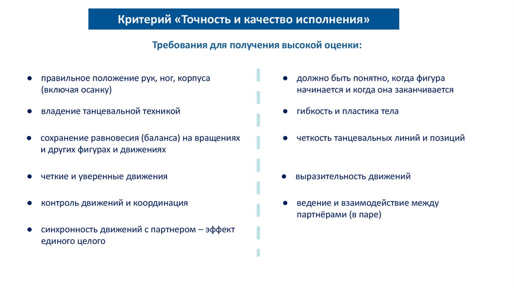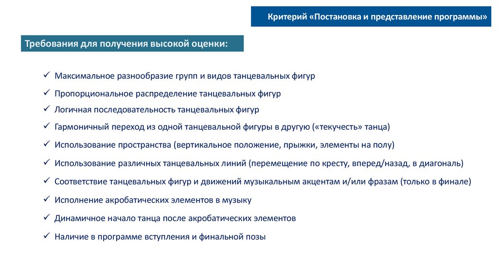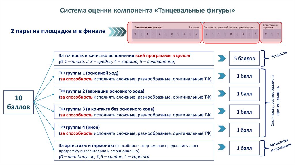 Соответствие танцевальных фигур и движений музыкальным акцентам и/или фразам (только в финале)